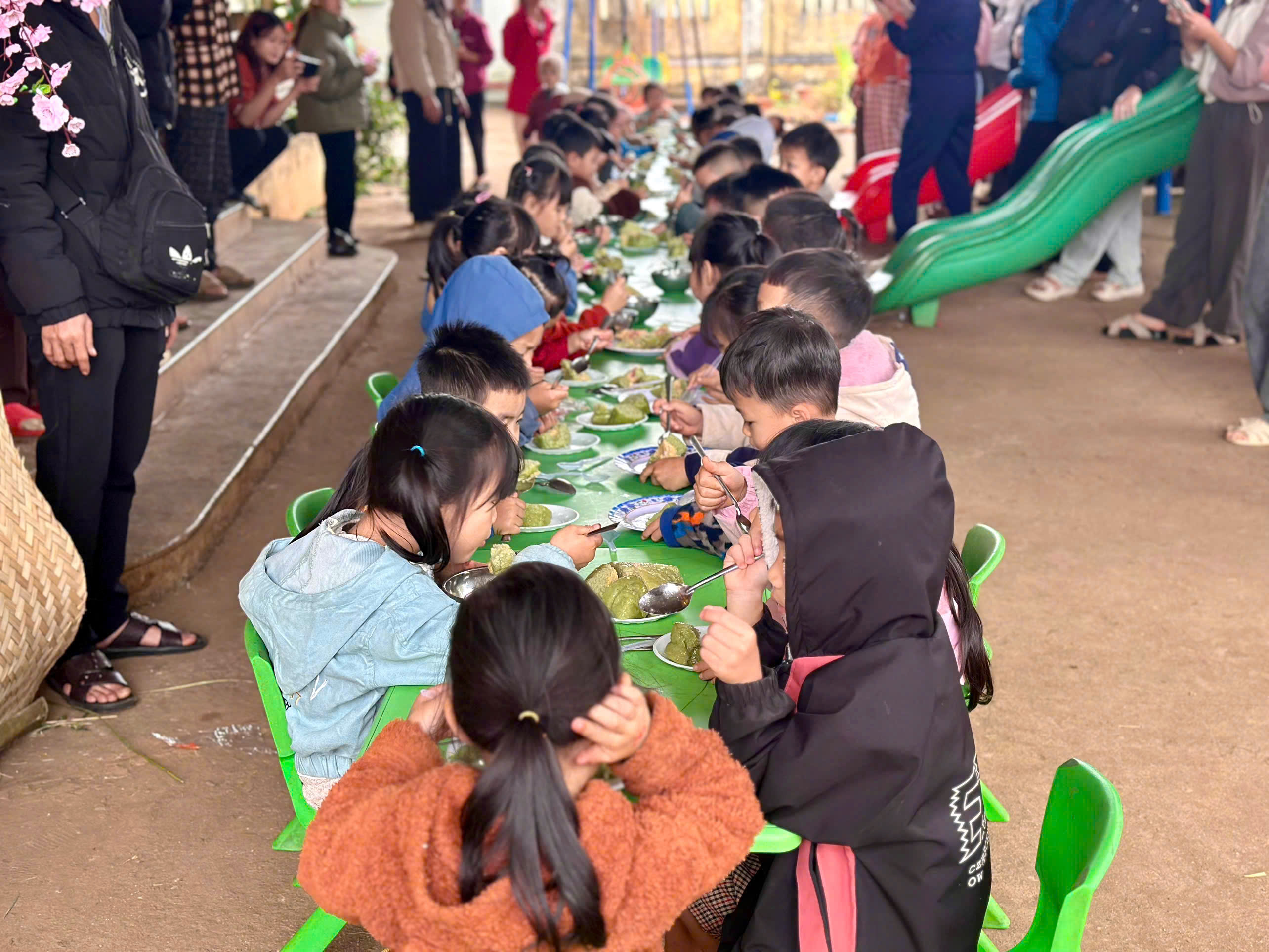 TRƯỜNG MẪU GIÁO BÚP SEN HỒNG – PHƯỜNG CƯ BAO, ĐẮK LẮK 🌿 **HOẠT ĐỘNG TRẢI NGHIỆM: “BÉ TẬP GÓI BÁNH CHƯNG – VUI TẾT CỔ TRUYỀN” 🌿 Nhằm giúp trẻ có cơ hội tìm hiểu và trải nghiệm nét đẹp văn hóa truyền thống của dân tộc Việt Nam mỗi dịp Tết đến, xuân về, Trường Mẫu giáo Búp Sen Hồng đã tổ chức hoạt động trải nghiệm “Bé tập gói bánh chưng” cho các bé tại lớp. Hoạt động được tổ chức với mong muốn mang đến cho trẻ những trải nghiệm gần gũi và ý nghĩa. Dưới sự hướng dẫn của cô giáo, các bé được quan sát, làm quen với các nguyên liệu quen thuộc để gói bánh như gạo nếp, lá dong, lá chuối, dây lạt… và trực tiếp tham gia vào các công đoạn đơn giản trong quá trình gói bánh. Qua đó, trẻ được khám phá thêm về món ăn truyền thống của dân tộc, hiểu hơn về ý nghĩa của chiếc bánh chưng trong ngày Tết cổ truyền. Không khí hoạt động diễn ra vui tươi, hào hứng. Các bé tỏ ra thích thú khi được tự tay tham gia trải nghiệm, cùng cô giáo và các bạn chuẩn bị những chiếc bánh chưng nhỏ xinh. Đây không chỉ là một hoạt động trải nghiệm thú vị mà còn là dịp để giáo dục trẻ biết trân trọng những giá trị văn hóa truyền thống, đồng thời rèn luyện sự mạnh dạn, tự tin và tinh thần hợp tác khi tham gia các hoạt động tập thể. Sau khi hoàn thành việc gói bánh, những chiếc bánh chưng sẽ được nấu chín để các bé cùng thưởng thức tại lớp và mang về chia sẻ với gia đình. Niềm vui hiện rõ trên khuôn mặt các con khi được cầm trên tay thành quả do chính mình tham gia làm nên. Hoạt động trải nghiệm “Bé tập gói bánh chưng” không chỉ mang lại niềm vui cho trẻ mà còn góp phần tăng cường sự gắn kết giữa gia đình và nhà trường trong công tác chăm sóc, giáo dục trẻ. Thông qua những hoạt động ý nghĩa như vậy, các bé thêm yêu trường, yêu lớp và hứng thú hơn khi tham gia các hoạt động học tập, vui chơi tại trường. Nhà trường xin chân thành cảm ơn sự quan tâm, đồng hành và phối hợp của Quý phụ huynh trong việc tạo điều kiện để các hoạt động trải nghiệm của trẻ được diễn ra vui tươi, an toàn và ý nghĩa. 🌸